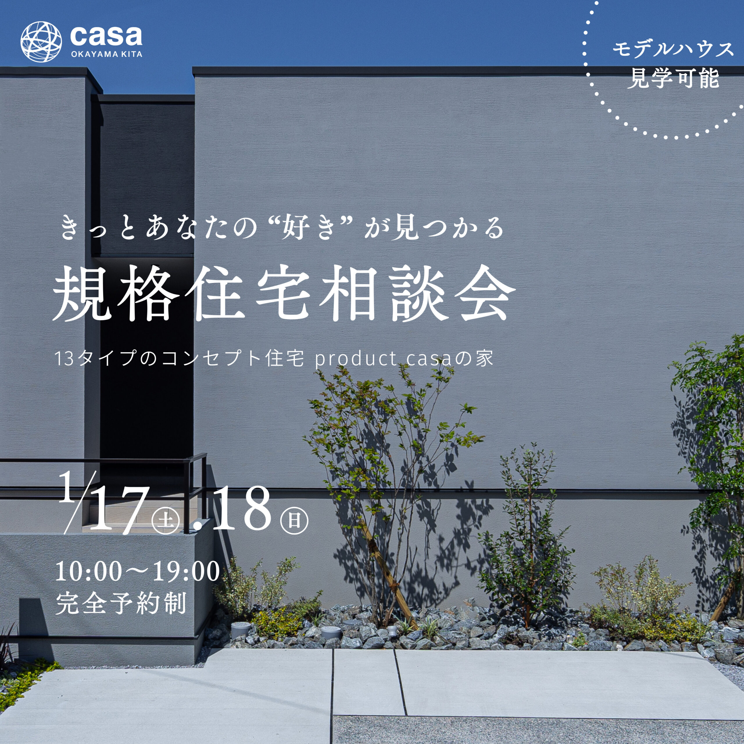 | 開催場所 | casa岡山北ショールーム(岡山県勝田郡奈義町中島西108-1) |